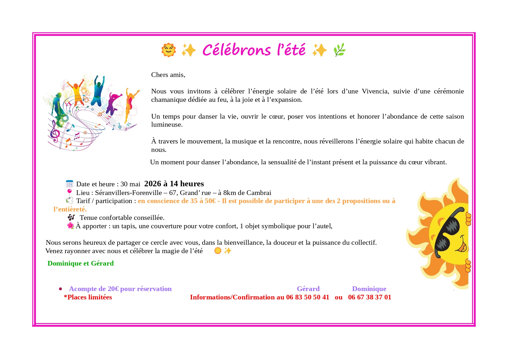 À travers le mouvement, la musique et la rencontre, nous réveillerons l’énergie solaire qui habite chacun de nous.
